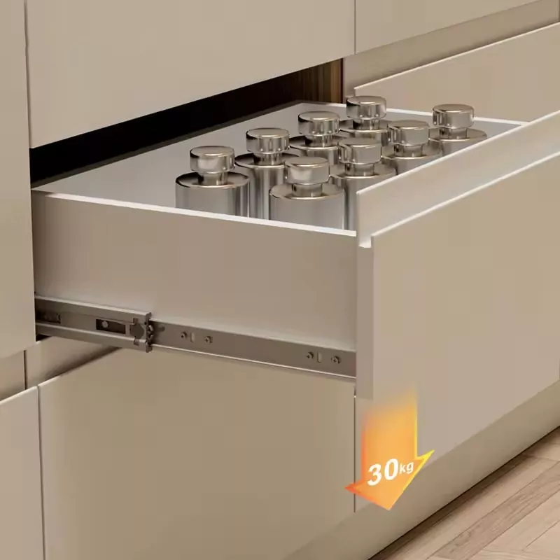 Το πρώτο πράγμα που πρέπει να εξεταστεί είναι η επιλογή υλικού. Υπάρχουν δύο συνηθισμένοι τύποι δρομέων συρταριών: ρουλεμάν και τροχαλία. Οι τύποι ρουλεμάν με σφαίρες γλιστρούν πιο ομαλά, ενώ οι τύποι τροχαλιών είναι πιο προσιτοί. Οι κουζίνες και τα μπάνια είναι συχνά υγρά περιβάλλοντα και οι ράγες χαμηλής ποιότητας είναι επιρρεπείς σε σκουριά. Αυτό αυξάνει την τριβή, προκαλώντας σοβαρή απόφραξη κατά την απομάκρυνση των συρταριών ή των θυρών του υπουργικού συμβουλίου. Με την πάροδο του χρόνου, αυτό μπορεί να προκαλέσει ζημιά και να μειώσει σημαντικά τη διάρκεια ζωής των επίπλων. Ως εκ τούτου, οι μαλακές διαφάνειες στενού συρταριού απαιτούν κάποια αντίσταση στη διάβρωση για να προσαρμοστεί σε τέτοια υγρά περιβάλλοντα. Το κράμα αλουμινίου, ο γαλβανισμένος χάλυβας ή ο ανοξείδωτος χάλυβας χρησιμοποιούνται συνήθως. Πηγαίνει όλα τα υλικά του από διάσημους εγχώριους κατασκευαστές, εξασφαλίζοντας σταθερή ποιότητα και απόδοση.