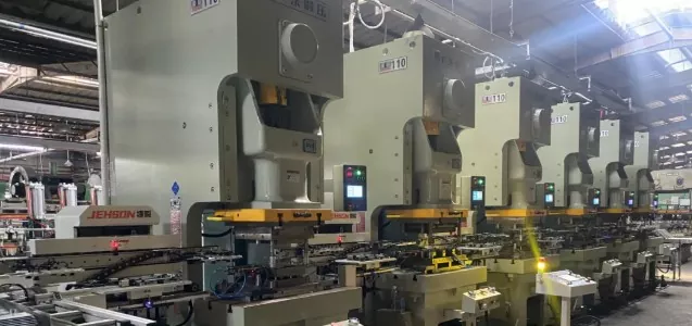 Μετά την επιλογή υλικού, το γαλβανισμένο φύλλο μετάλλου επεξεργάζεται μέσω μιας διαδικασίας σχηματισμού σχηματισμού ντουλάπας χρησιμοποιώντας τον εξοπλισμό πατώντας κυλίνδρους. Αυτή η διαδικασία καθορίζει το μέγεθος και το σχήμα των διαφανειών του συρταριού Undermount και αποτελεί ένα κρίσιμο βήμα στην παραγωγή διαφανειών. Οι διαφάνειες ραπτικής σιδηροτροχιάς στη συνέχεια υποβάλλονται σε επεξεργασία μέσω μιας διαδικασίας σφράγισης, όπου το γαλβανισμένο φύλλο μετάλλου σφραγίζεται για να δημιουργήσει το πλήρες σχήμα διαφάνειας. Ένα σύστημα ρομποτικής λαβής χειρίζεται τη φόρτωση και την εκφόρτωση, τη βελτίωση της συνολικής ακρίβειας και της αποδοτικότητας της παραγωγής. Τέλος, η πλήρως αυτοματοποιημένη συγκόλληση συνδέει όλα τα εξαρτήματα της πόρτας του ντουλαπιού για να παράγει το τελικό, πλήρες προϊόν. Η HY χρησιμοποιεί αυτοματοποιημένες διεργασίες από το σχηματισμό συρταριού στη σφράγιση στη συγκόλληση, εξασφαλίζοντας ελεγχόμενη ποιότητα και ασφάλεια του προϊόντος, ενώ παράλληλα επιτυγχάνει υψηλή αποτελεσματικότητα παραγωγής και μειώνοντας σημαντικά το ανθρώπινο σφάλμα.