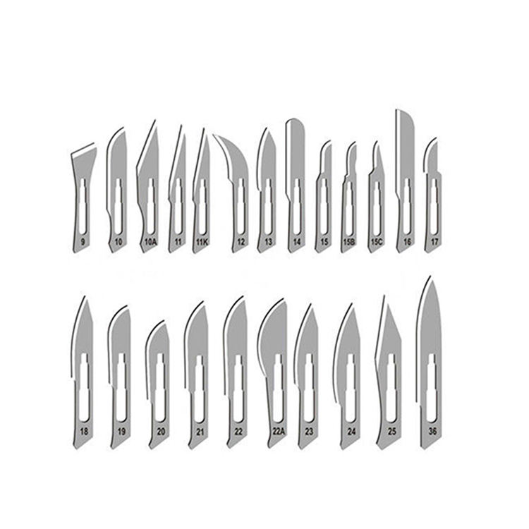 1) Χειρουργική λεπίδα Μέγεθος: 9#, 10#, 11#, 12#, 13#, 14#, 15#, 16#, 18#, 19#, 20#, 21#, 22#, 23#, 24#, 25#, 26#, 27#, 34#, 36#.